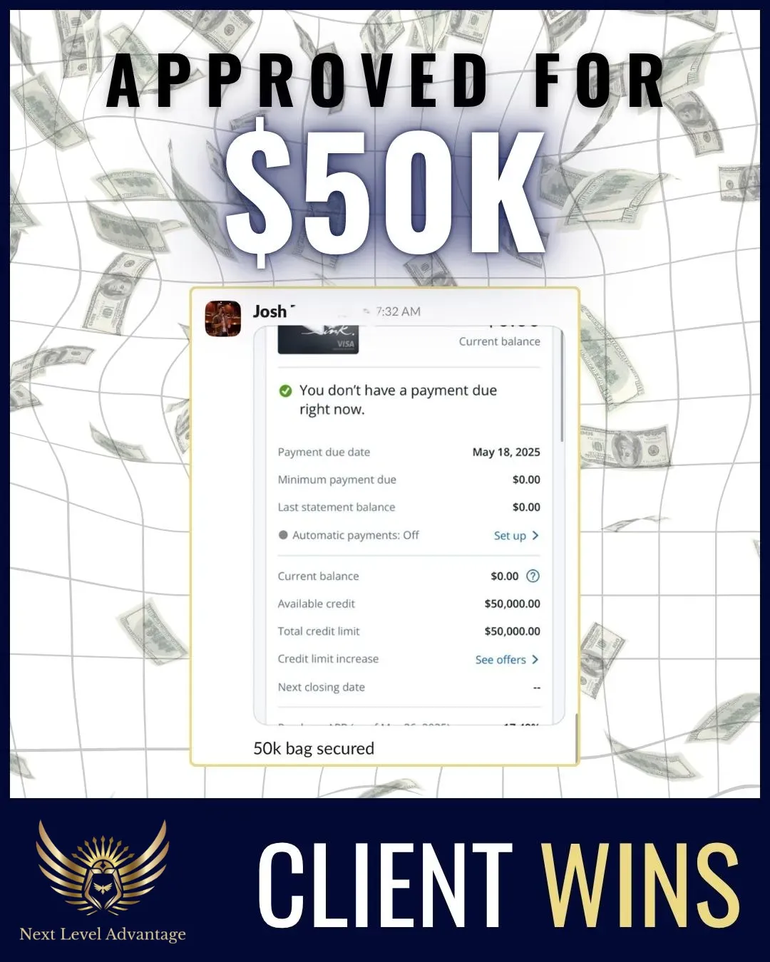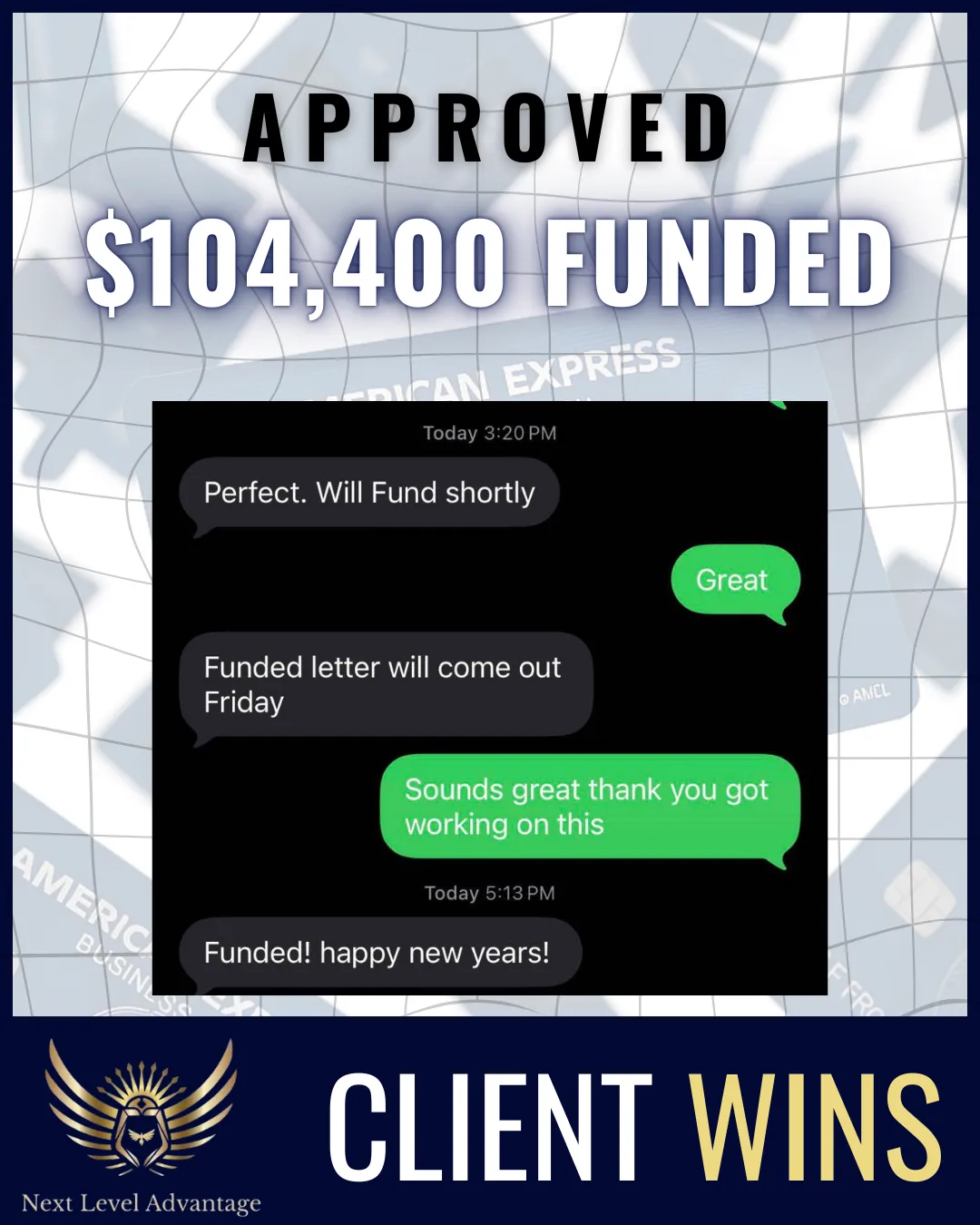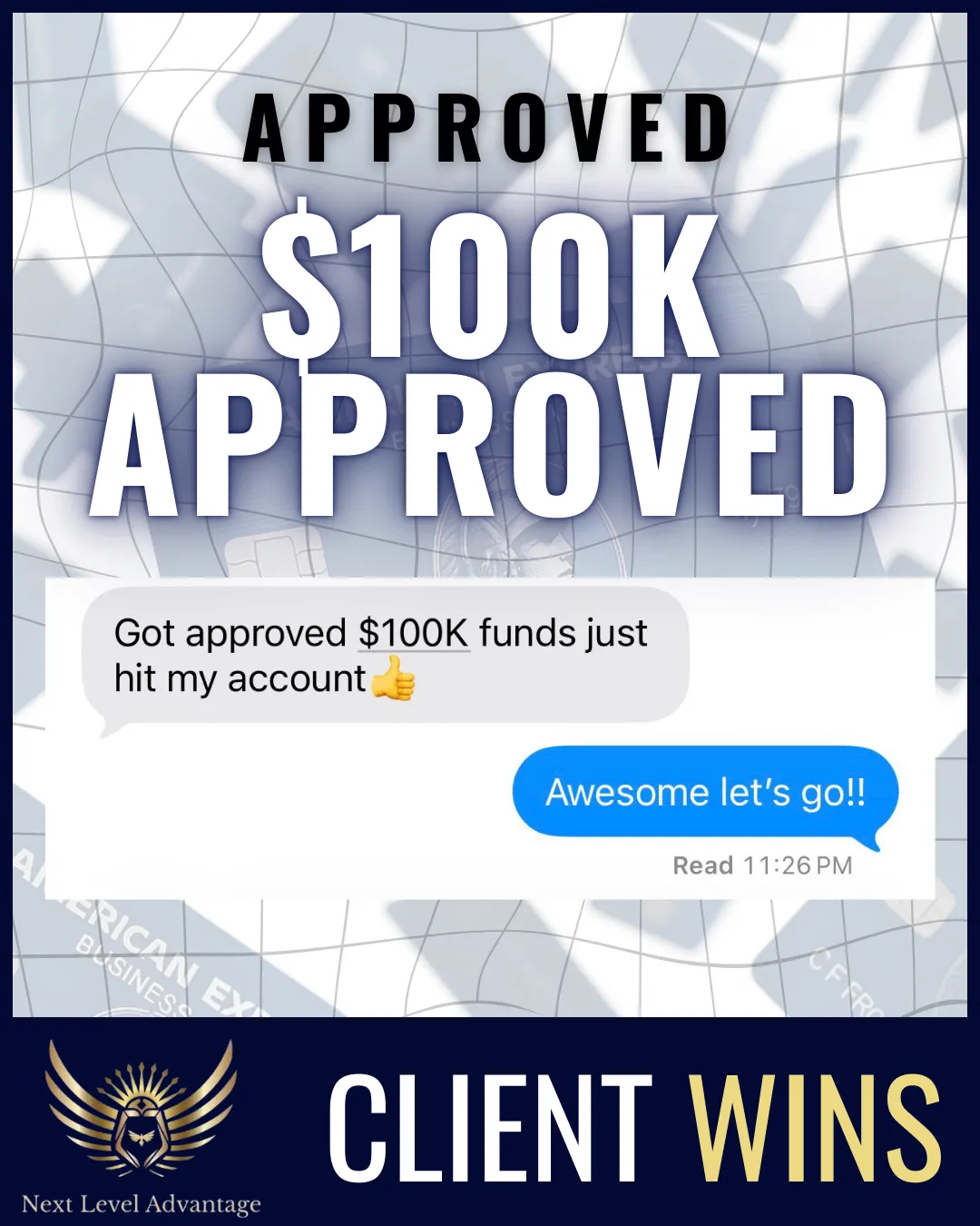 Next Level Advantage helped me remove items from my credit which in turn helped me qualify and obtain $100k+ in funding!! Leveraging the funding I scaled my credit company to multiple 6 figures and have been a full time entrepreneur for over a year now. The team was very prompt with responding, communication, and most importantly, results!! Can't recommend it enough
