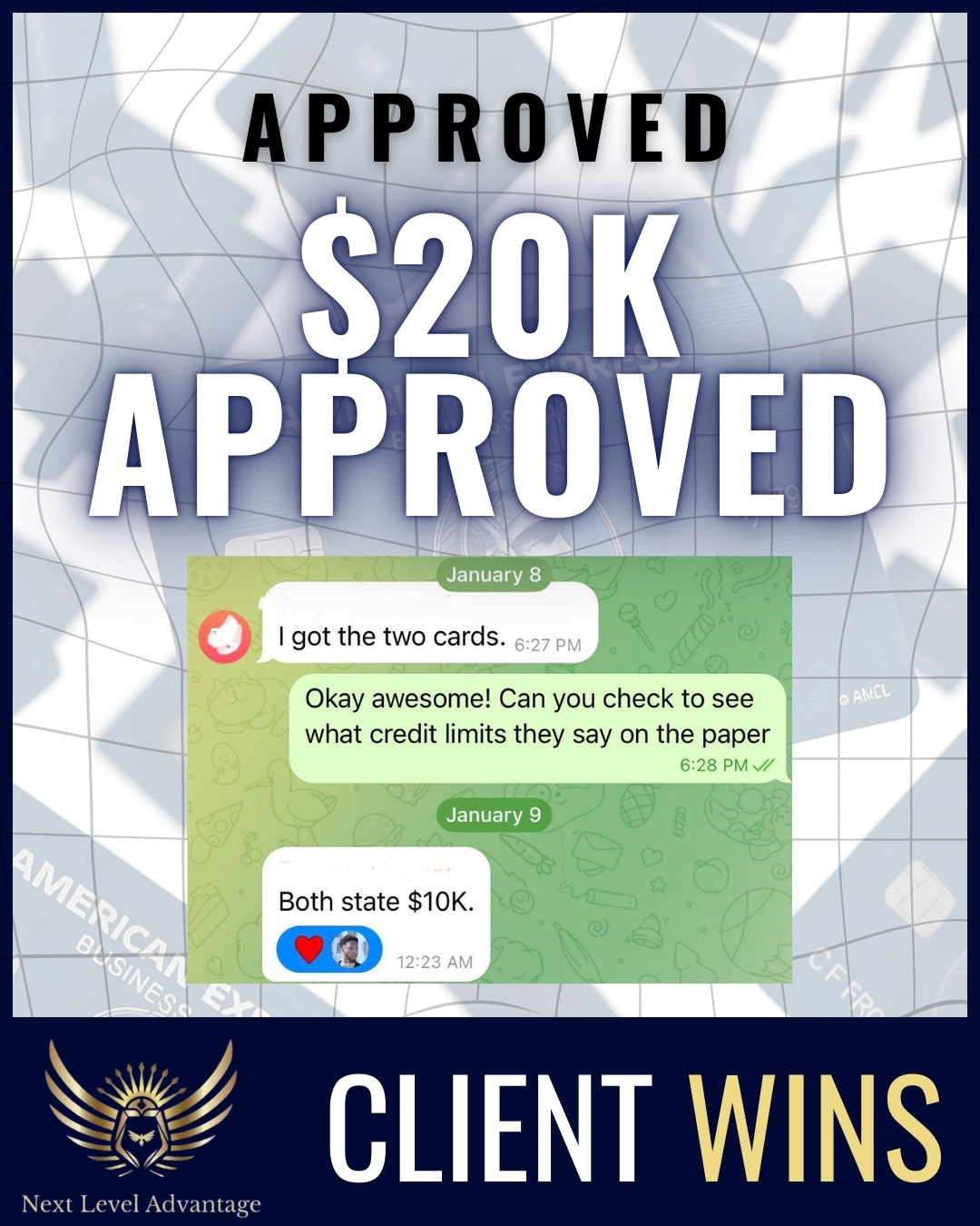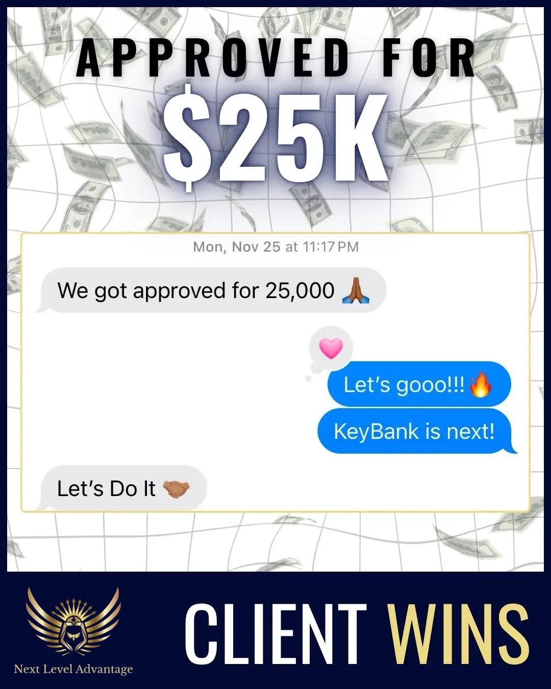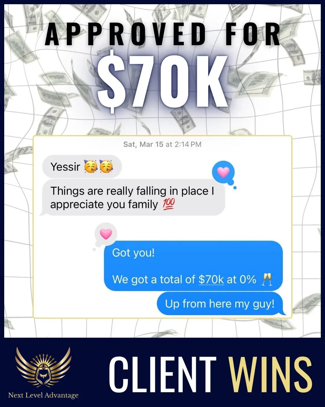 Next Level Advantage helped me remove items from my credit which in turn helped me qualify and obtain $100k+ in funding!! Leveraging the funding I scaled my credit company to multiple 6 figures and have been a full time entrepreneur for over a year now. The team was very prompt with responding, communication, and most importantly, results!! Can't recommend it enough